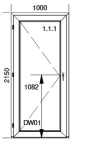 Blanc extérieur, blanc intérieur. Dimensions 1000×2150 mm. Panneau NL EK 10. seuil alu